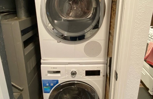 Large gathering area with 75 inch TV and dining table for 8. Private entrance/deck, private grill, private washer/dryer and a well appointed kitchen with a breakfast bar. Cozy master suite with a queen size bed and a 55 inch TV. Bunk room with 4 beds (one is a full) that comfortably sleeps 5, and 3/4 bath with newly tiled shower. Small grass area off deck for dogs. Parking in driveway off cul-de-sac (snow tires recommended for driving in mountains during winter).