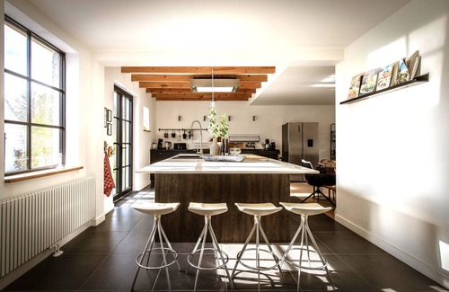 Zand7 is waiting on the edge of the Kattenbos in Lommel. This old farm has been completely renovated and the authentic elements of the past were put in the spotlight. The charm of the past and the comfort of today. Or beamed ceilings but just as well as Netfix. And thanks to the clear material and color choices (wooden floors, black steel and gray accents), the style picture fits perfectly.