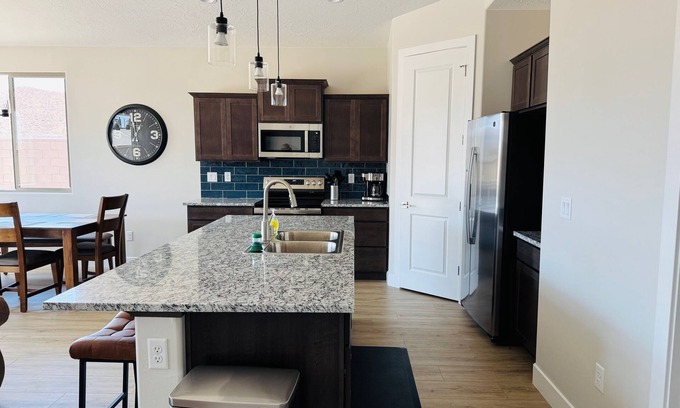 Val Vista Hideaway |12 minutes to Sports Complex + $500 in complimentary activities! is located in Mesquite. Val Vista Hideaway |12 minutes to Sports Complex + $500 in complimentary activities! provides accommodation, featuring Balcony/Terrace, Wellness Facilities, Barbecue/Outdoor Cooking, among other amenities. This House features Balcony/Terrace, Wellness Facilities, Barbecue/Outdoor Cooking, to make your stay a comfortable one.