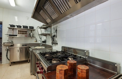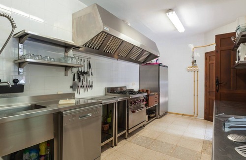 There are also seven bathrooms, six with a bathtub and one with a shower, and two toilets. It also has two lounges, each with fireplaces, and one with a dining room. A fully equipped industrial kitchen.