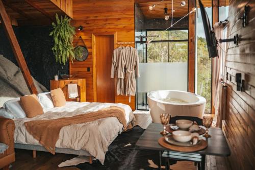 Vale dos Saltos Cabanas offers a hot tub and air-conditioned accommodations in Tijucas, 19 miles from Itapema Bus Station. Both free Wifi and parking on-site are accessible at the luxury tent free of charge. Guests can enjoy mountain views. Each unit comes with a sofa, a seating area, a flat-screen TV, a well-equipped kitchenette with a dining area, and a private bathroom with bathrobes. A microwave, a stovetop, and minibar are also offered, as well as a kettle. At the luxury tent, units come with bed linen and towels. Guests at Vale dos Saltos Cabanas will be able to enjoy activities in and around Tijucas, like hiking. Guests can relax in the garden at the property. Bombinhas Panoramic View Park is 24 miles from the accommodation, while Municipal Streets is 28 miles from the property. Florianopolis-Hercilio Luz International Airport is 37 miles away.