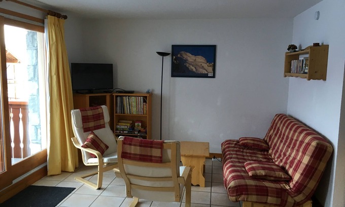 Comfortable apartment, calm and bright, with south-west facing balcony, downstream of the Myrtilles ski slope, on the 1st floor of a 90s residence on the slope. Direct access to the slopes. 200m upstream from the resort center, chairlift, shops (caterer, bakery, equipment rental, laundromat, press, restaurants and mini-market), daycare and ski lessons, and 100m downstream from the forest. Public parking 100m from the residence. Ski lockers at the entrance of the residence. Friendly living room with click-clack allowing two additional beds.
