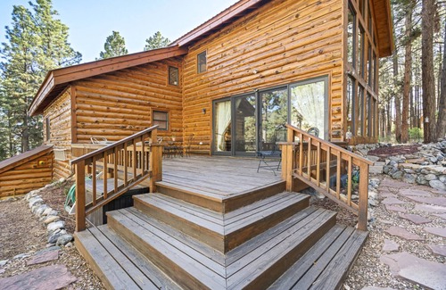 This Vallecito Lake cabin is located 18 miles outside of Durango in the Weminuche Wilderness. This cozy getaway offers quiet and peaceful surroundings with all the relaxing amenities. Sit outside on one of the two front decks and watch the deer walk through the yard or rest in the hammock on the back deck and listen to the wind blow through the pines. The 3,000 sq/ft cabin offers five sleeping areas and three full bathrooms.
