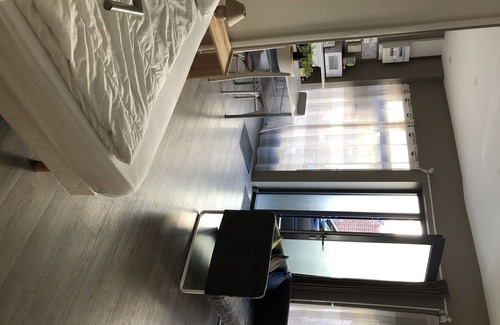 We offer you a nice studio for 2 people in the street leading to the beach, it is composed of a fully equipped kitchen with hob, oven, microwave, fridge and utensils with basic products (salt, pepper, coffee , tea, sugar) and its dining area.