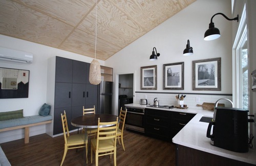 A fabulous place for two! This mod one bedroom space will have you question larger home living. It has everything a couple needs for settling in and staying awhile. Privately situated and surrounded by trees, The Valley Overlook is the perfect place to unwind. Just a short 20 minute drive to downtown Asheville, this place gives you the perks of nature with easy access to urban activities.