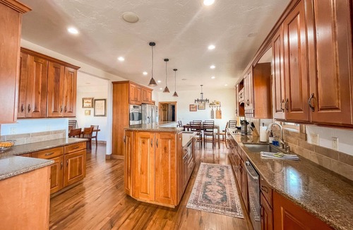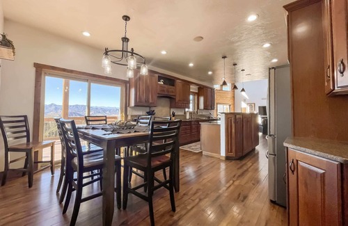 Valley Ranch is a stunning 5,000 square foot lodge-style vacation rental that makes for the perfect wedding accommodation. Nestled on the Royal Gorge Plateau, this exceptional property offers a rustic yet luxurious feel, accommodating both large groups and intimate gatherings with ease. With its picturesque views of the Sangre de Cristo Mountain range and expansive indoor and outdoor spaces, your special day will be unforgettable amidst the natural beauty of Canon City.