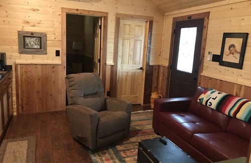 Quiet secluded cabin, on top of a hill, with view of Brazos River Valley. (Note, road leading to this cabin is steep and unpaved, so it might be daunting to guests not accustomed to country living.) Our home is at top of the hill and we have driven this road for 22 years - without 4-wheel drive. *