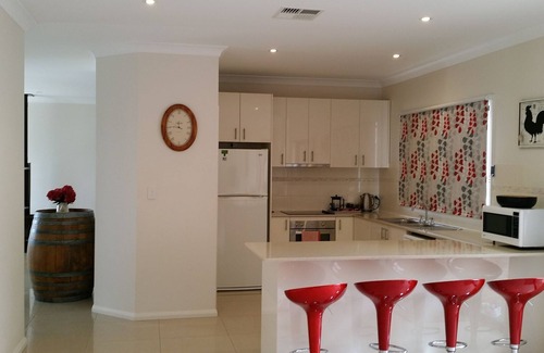 Modern 4 bedroom home with panoramic views of the Mudgee country side and surrounding vineyards. The home is a magnificent open plan homestead with reverse cycle ducted air conditioning and a slow combustion heater for the crisp Mudgee nights. It is fully self contained, comprising a modern kitchen, laundry, bathroom, two living areas with TV/DVD and ensuite off the main bedroom. There are porcelain tiles throughout the living areas while the bedrooms are carpeted. The home is set on several acres and is in a quiet and peaceful location approximately 15 minutes from Mudgee. You can look out on to the speculator views through the day and sit around the outdoor fire pit, gazing at the stars , when the conditions allow for the use of an outdoor open fire.