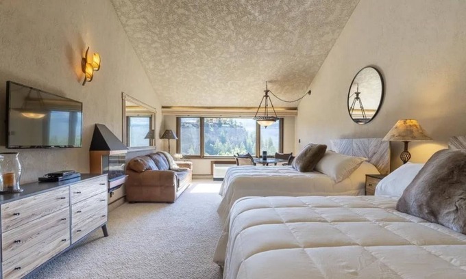 Charming 2‑bed studio at Tamarron Resort’s Main Lodge. Fully furnished with kitchen, two queen beds, dining area, and full bath. Bright and airy with large windows, comfortable beds & stunning views of the Glacier golf course and San Juan Mountains. Enjoy resort amenities: indoor/outdoor pools, hot tubs, sauna, fitness center, tennis, dining—10 minutes to Purgatory ski & 15 minutes to downtown Durango. We look forward to hosting you!