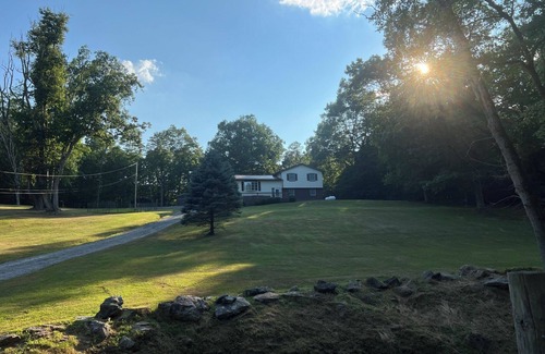 Discover this delightful 3-bedroom 2 bath split level home situated on 10 acres of wooden privacy in Hico,WV . This retreat sleeps up to 10 guests, and is perfect for a family reunion, girls getaway or multi-family vacation! It features a master suite with 1 king bed and an ensuite bathroom, bedroom two is furnished with 1 queen bed, and bedroom three is equipped with 2 sets of bunk bed, and the sectional sofa in the living can be reconfigured into a queen-size bed to sleep 2 additional guests, with amenities like Wi-Fi, washer and dryer, heating, AC, smart TV, gas fireplace, fully equipped kitchen with dishwasher, gas grill and private hot tub on the spacious deck guests will feel right at home! All you need to do is be prepared to relax and enjoy your stay! Choose from many year round outdoor attractions including the New River Gorge National Park and Preserve, New and Gauley River white water rafting, with our activity partner Adventures on the Gorge, ATV's, horseback riding, hiking, golf, skiing and tubing at Nearby Winterplace Ski Resort, boating at Summersville Lake, and two state parks just a short drive away!