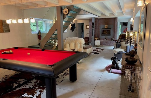 Vast contemporary residence with billiard table and blanéo bathtub is located in Cier-de-Luchon. Vast contemporary residence with billiard table and blanéo bathtub provides accommodation, featuring Child Friendly, TV, Fireplace/Heating, among other amenities. This House features Child Friendly, TV, Fireplace/Heating, to make your stay a comfortable one.