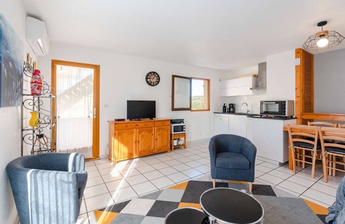 Located in a residence with a collective swimming pool on the heights of Narbonne-Plage, this 3-roomed house can accommodate 4 people.
