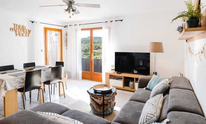 Access to a terrace with garden table, magnificent view of the Massif de la Clape. Solarium on the 2nd floor for sunbathing in peace!