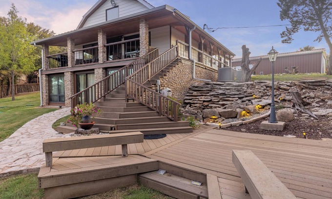 This waterfront property on the West side of Possum Kingdom offers a secluded retreat with a tranquil ambiance. With 5 bedrooms and 3.5 baths, this home has ample entertainment areas and a multitude of sleeping accommodations, making it ideal for a weekend getaway.