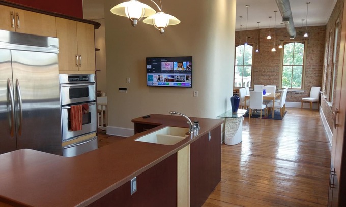 Amazing, luxurious, modern, high-tech, palatial, richly furnished 4000 Sq. Ft. downtown loft home. 12 foot ceilings, 3 large bedrooms with 70" TVs and full baths, $70,000 custom gourmet kitchen, 14 foot 3D TV / Gaming projector in living room, huge rec room with dozens of free play, full-sized arcade games, foosball, and pinball. Sleeps up to 10 with 2 sofa beds. You will never find another place like this anywhere. This is the type of place President Trump might stay, minus the gold plating.