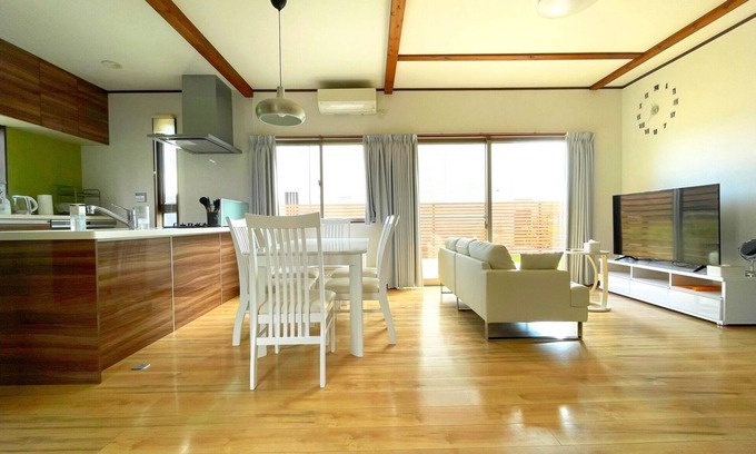 This spacious detached house is located a 2minute drive from Ichinomiya Beach and can accommodate up to 7 people