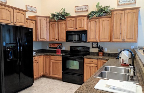 + Pull up a seat at the spacious table for six, plus two more at the breakfast bar—plenty of room for the whole crew.