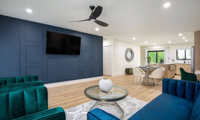 Deep-hued velvet furnishings create a luxurious ambiance at the Velvet Bloom. Only 3.5 miles from Downtown and the beach.