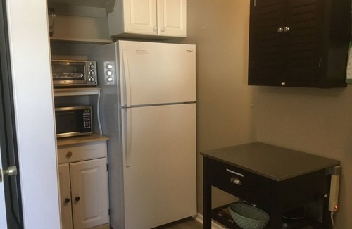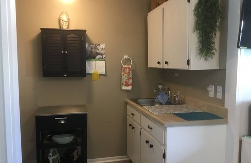 Private entrance and your own driveway and parking. Entrance to the unit is at the back of the house. Large room with recliner loveseat, 40” TV, Queen size bed, table and chairs, twin burner, microwave, blender, coffee pot, toaster oven, tea kettle, sink and full refrigerator. Bathroom has a walk in shower. Outside has a table and chairs. You are welcome to enjoy a fire pit upon request: roast a marshmallow or hot dog. You are also welcome to use the gas grill upon request to enjoy a good steak or whatever is your pleasure.