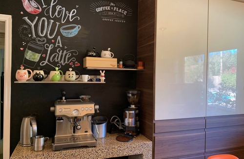 Toaster, Dishwasher, Dishwasher detergent, Espresso Coffee Maker, Tea water maker, Blender, Cooking essentials, Silverware, Plates, Bowls, Glassware