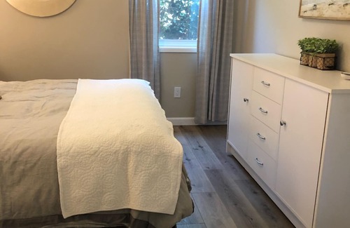 Renovated Jan 2021. One bedroom One Bath Air Conditioned, Furnished all utilities included, with Private Fenced Yard. Located is Middle Class Residential Neighborhood, at the end of a Cultisac, NON Smoking/ Allergy Sensitive/ No pets. Queen size Select Comfort Bed w/ 300 plus thread count sheets,. Full Kitchen with Stainless Steal Appliance’s, Dishwasher, Oven. Laundry Room on site shared with two other Professional Long Term Guests. Shared Community Organic Garden to plant or simply enjoy sitting, enjoying our CA Ocean Breazes. Parking on the property for 2 small or mid size vehicle in front of guests unit. Seven minute drive to Ventura Beaches and 3 minute bike ride to catch the Ventura/Ojai Bike trail to either the beach or to Ojai. The Mountains to Beach Marathon run by this property. When its foggy at the beach its always sunny in our little Mountain Valley. Its a quiet country setting just minutes from the busy downtown and beach areas. Residents who have enjoyed living here have been Residents at Ventura County Medical Center, Traveling Nurses at St. Johns Hospital in Oxnard, Patagonia, and other local businesses .ADDITIONAL CHARGE FOR EV CHARGING UPON REQUEST We also manage/ own Ventura Family Beach Home Vrbo # 477873 which has 20 + reviews and Vrbo # 643533 if you would like to read from other guests about their past experience in working with us.