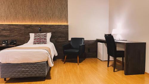 Verde Vale Hotel is located in Videira. Among the facilities at this property are a shared lounge and room service, along with free WiFi throughout the property. Guests can enjoy river views. At the hotel all rooms have air conditioning, a desk, a patio with a city view, a private bathroom, a flat-screen TV, bed linen and towels. All guest rooms feature a closet. Staff at Verde Vale Hotel are available to give information at the 24-hour front desk.