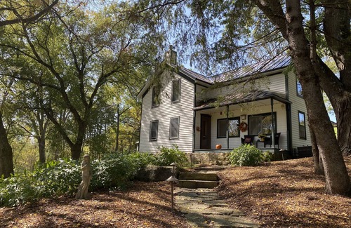 Vermont West is the respite you have been waiting for. A country house, Vermont West is nestled deep in the rolling hills of southwestern Wisconsin. It is a weekend home away from home, filled with serenity and privacy. Situated on a 12 acre tree farm, there are mowed trails to roam on the property, a small winding creek, gardens of wildflowers, a fresh water spring and an evening sky full of stars, dependent on Mother Nature. Regardless of the season, you will find yourself immersed in the beauty of nature and the tranquility of pure relaxation.