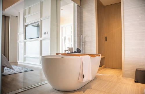 Your wedding experience at Vertu Harmoni Jakarta includes a range of luxurious amenities. The hotel features an outdoor pool, a fitness center, and a bar/lounge where you can unwind after the festivities. Each of the 240 air-conditioned accommodations is equipped with modern conveniences such as minibars, laptop-compatible safes, and 42-inch LED televisions. Immaculately designed bathrooms come with complimentary toiletries and high-end fixtures, ensuring that you feel pampered during your stay. The hotel's attentive staff is available around the clock, offering services like room service and in-room massages to enhance your experience.