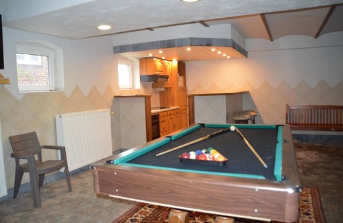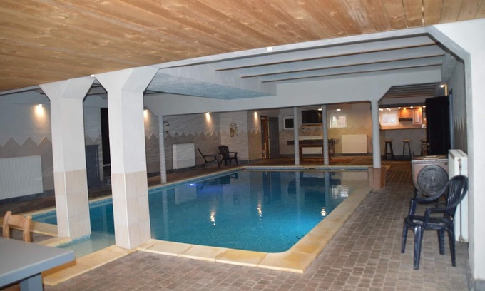 This elegant 5-bedroom holiday home in Verviers offers a luxurious retreat for up to 14 guests, perfect for families or groups. Unwind in your private indoor pool, infrared cabin, or sauna, then gather for a barbecue on the spacious terrace. The refined interior and modern amenities ensure a relaxing and stylish stay. Outdoors, enjoy a large private garden with a tennis court and petanque court, ideal for all ages. Located just 15 km from the High Fens and close to the spa town of Spa, the home is a great base for exploring nature and nearby cultural gems like Château de Franchimont. The home includes a fully equipped kitchen, recreation room with billiards and darts, and cozy bedrooms. Electricity (€0.45/kWh), water (€5/m³), and heating (oil €1.50/l) are charged on-site.Pets are not allowed.