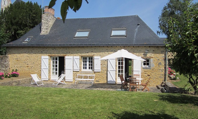 Very nice, calm, charming, comfortable and completely renovated country house : 4 rooms (a very nice kitchen nice living room with 2 old "fours a pain" kept for decoration, 2 very nice bedrooms upstairs (one king size bed and 2 twin single beds and 1 canapé-lit bed ( 1 baby bed), and very pretty bathrom), 1 stone stairase (1 floor), 5 persons available but the best is to be 4 pers. The house is located on the border of a charming and old village and has a very big and beautiful private garden with old stone walls all around, a large terrase with view on the garden village, outside furniture, barecue, ping pong and other games (pétanque...). Football yard and tennis court both very very close. Many other possibilities of beautiful tourism and practice of sports as golf (near the city of LAVAL), poneys (near), baths (small bathing lakes with pedalos near too) or nice country side walks all around. Adress : Le Presbytère, 53 150 Brée, near MONTSURS, department of LA MAYENNE, FRANCE