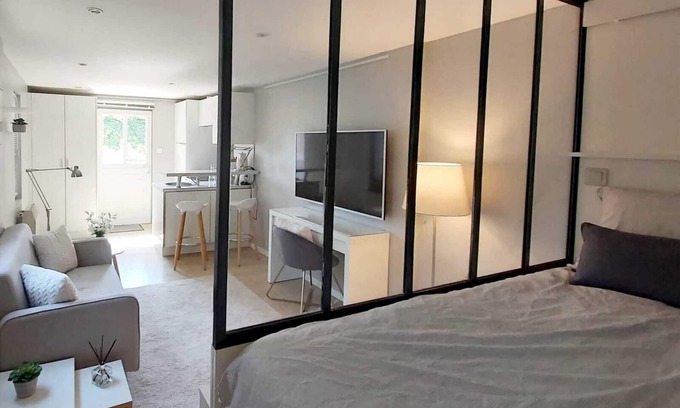 The studio is very zen and totally well equipped. Nothing is missing, everything is new and clean. In order to provide our guests with a small outdoor space, we have installed a small table with 2 chairs in front of the apartment facing the steps in the courtyard, which is shared with the other homes. The entrance to the apartment is completely independent, and is reminiscent of a "small studio house". We have designed it to be pleasant to live in so that our guests have a superb stay in Lyon.