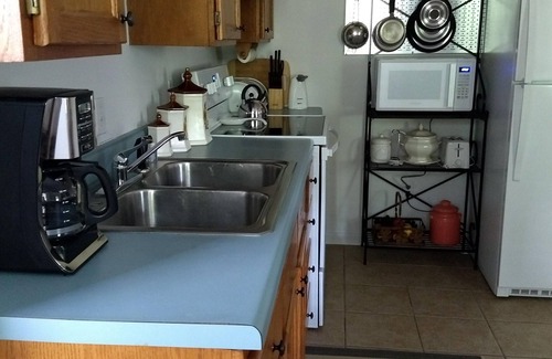There are 5 steps to the porch & front door of the bungalow. Prior to your arrival you will be given a code for the key-less entry. Designated smoking area outside that we are working on. Kitchen items are furnished, each bedroom has a queen bed & 32" Samsung Smart TV with Netflix, Hulu and Amazon access, as well as local channels. There is one bathroom with a shower, no tub, and we are on the county water system. There is one small private room, but not locked, where we keep supplies and cleaning items. The rest of the bungalow is spacious and yours for your stay.