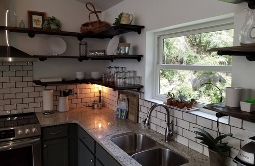 This is a 2 bedroom/1 bath (above garage) unit that was built new in 2021. The home has a fully equipped kitchen, washer & dryer, living room with flat screen smart TV, an outdoor patio space and an outdoor grill. Access to and from the house is easy (no winding narrow mountain roads) and the lot and driveway are level and sit in the mountains just .8 miles off the main strip. You will have to climb a single flight of stairs to access these accommodations. Guests have full access and use of the garage. The Smokey Mountain National Park is located right across the street and the house is very close to Downtown Gatlinburg, Mynatt Park and the entrance to the Roaring Fork motor trail.