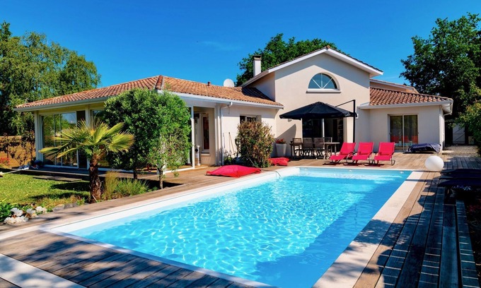 Very comfortable villa with heated pool between ocean, bay and lake is located in Le Porge. Very comfortable villa with heated pool between ocean, bay and lake provides accommodation, featuring Ocean View, Sports/Activities, Child Friendly, among other amenities. This House features Ocean View, Sports/Activities, Child Friendly, to make your stay a comfortable one.