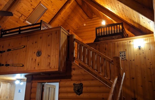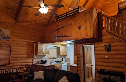 Everything you'd want from a cabin. Multiple decks, tucked in the trees, on a paved road for year-round access. Upstairs is a large loft area with two bunkbeds (queen bottoms and twin tops) and downstairs is a private bedroom with a queen bed. This is an amazing getaway home.