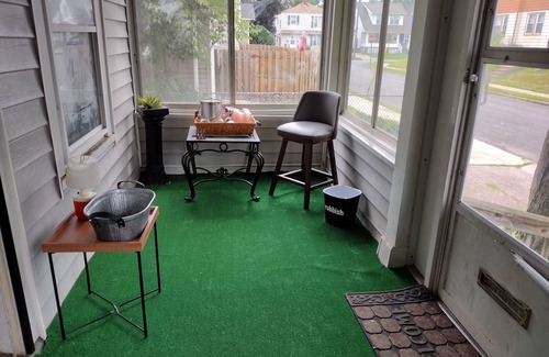 It's very cozy closed in sun porch and it's close to downtown Cleveland close to all freeways, park and grocery stores and close to all the malls and definitely the restaurants. dog friendly big backyard.
