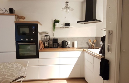 As you settle into this 1-bedroom, 1.5-bathroom rental, you'll find air conditioning and a desk. Bathroom amenities include a hair dryer, toilet paper, and soap. The kitchen is equipped with an oven, a stovetop, and a refrigerator, as well as a coffee maker, an electric kettle, and a microwave. And you can even pack a bit lighter because there's a washer and dryer.