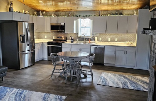 Enjoy your lake vacation at the newly constructed home minutes from the water, corner lot in a peaceful neighborhood. 2 bedrooms 1 king, 1 queen, 1 1/2 bath full size Samsung washer/dryer. This lot is perfect for boaters or just to kick back and enjoy your stay. Common areas features a large open concept with full size kitchen, gas fireplace.. Gas/combo grill, covered front porch. Bring you boat parking is very good. A variety of restaurants such as Patti's settlement, Oasis bar and grill, The joint BBQ, and authentic mexican restaurant, and Blue Collar grill. Several marina's nearby, Buzzard Rock bar and grill, Hu'be's bar and grill are just a few examples of great food/entertainment just minutes away. Paducah Ky is only a 40 mins drive which offers a shopping mall and multiple restaurants. 2 night minimum stay and 3 night minimum stay on holiday's. There is a pet fee, $35.00 per night per dog limit 2 dogs. Kayaks (2) free available , first come first serve.
