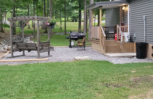 Enjoy your stay at this very nice 1 yr old, 1 bedroom with king bed 1 bathroom vacation rental located on Lawwill Rd close to Barkley lake. This shaded lot is perfect for boaters or just to kick back and enjoy the country like surroundings. Amenities include, Pergola swing, gas grill, fire pit with wood provided, 2 covered porches very peaceful secure area. Bring your boat parking is excellent, huge parking area. A variety of restaurants such as, Patti's settlement, Oasis bar and grill, The joint BBQ, and authentic Mexican restaurant. Several marinas nearby, Buzzard Rock bar and grill, Hu'be's bar n grill are just a few examples of great food just minutes away. Paducah KY is only a 40 min drive which offers a shopping mall and multiple restaurants. 2 night minimum stay and 3 night minimum stay on holiday's. There is a pet fee, $35.00 per dog per night limit 2. Kayaks (2) free available, first come first serve