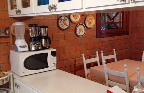 The house is very pleasant, with 2 bedrooms, two bathrooms and a complete suite with dressing room on the upper floor, a bathroom on the lower floor, living room, dining room, equipped kitchen, laundry, barbecue, pizza oven, large swimming pool with area beach for children and waterfall in the pool. We provide 2 kayaks for guests to use.