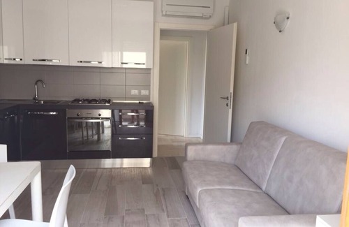 Two-room apartment recently renovated at 250 mt from the sea. 4 sleeping accommodations, Kitchen with oven, and microwave living room with double sofa bed, TV, air conditioning, bathroom with shower and washing machine, 2 terraces, lift, reserved parking, beach place with beach umbrella and two deckchairs included in the price.