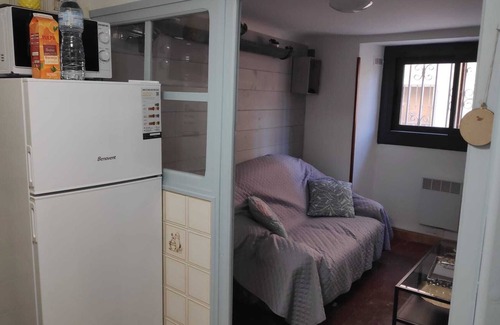 Very nice house in the fortified village of Montblanc in Catalonia. On the ground floor a garage can accommodate a car and possibly bikes, trailer, etc. A bathroom with toilet, washbasin, bathtub. There is also a convenient laundry area with washing machine and laundry. On the first floor a kitchen, a living room and a small living room. On the second floor there are 2 bedrooms each with a double bed. There is also a toilet and washbasin. Finally on the last floor a room with a bed in 140 and a small terrace which gives you an impregnable view on the ramparts and towers of Montblanc.