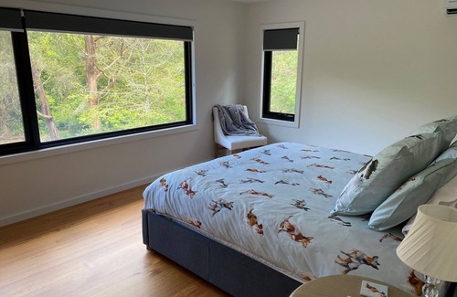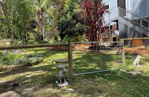 The complete upper floor is yours. 3 bedrooms, kitchenette, lounge, full stylish bathroom and separate powder room. There are 10 acres of serenity with enough peace and quiet to help you unwind completely. Dogs are more than welcome with fully secure yard next to the home, plenty of shady trees and definitely allowed inside. Breakfast is for the whole family including our furry guests.