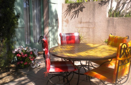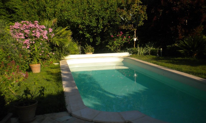 P2 with private entrance and shaded garden with garden furniture and sun loungers. It is provided with a 140cm bed with sheets and blanket, television, wifi, heating, a bathroom with towels and bath sheets and wc, independent kitchenette equipped with a fridge, electric hotplates, kitchen utensils, crockery ... etc. There is a third independent sleeping area in 80 with sheets. It is located on the ground floor of our villa, protected from view, in a very quiet residential area, 15 minutes walk from the heart of the village and its shops, restaurants and its typical colorful market which is set up twice a day. week (15000 inhabitants). You will be able to appreciate the peace in the pleasant flowered garden around the swimming pool. Possibility to park your vehicle on the property.