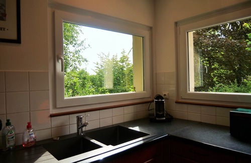 We offer a 180 m² house on 3 levels composed of a large living room/dining room opening onto the terrace from where you can fully enjoy the stunning views over the valley of Enchenberg and a very well fitted contemporary kitchen (ceramic hob, dishwasher, double door refrigerator, micro-wave, convection oven, coffee machine, Nespresso machine, electric kettle, toaster, steam cooker, etc.) On the ground floor there is also a toilet as well as a small laundry room in which there is a washing machine, a tumble dryer and a freezer at your disposal. On the first floor, there are 3 bedrooms equipped with beds and a bathroom, a shower room and a toilet.