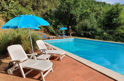 A relaxed family villa on the Umbrian-Tuscan border – walking distance from a medieval hill-town, yet wrapped in birdsong and forest silence.