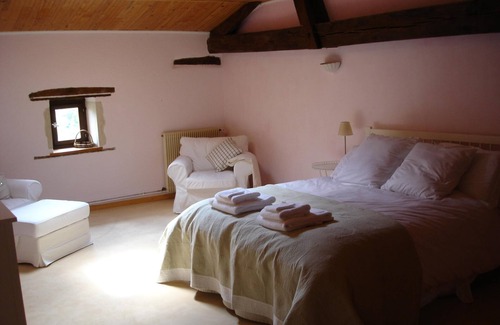 The house itself has 5 bedrooms (2 king-size and 3 twin rooms) all upstairs, with many exposed beams and all surrounding an enormous landing. There are two bathrooms upstairs, both recently renovated and featuring walk-in showers and a roll top free standing bath. There is an additional toilet downstairs. All linen is provided and is of a high quality with cotton sheets and fluffy white bath towels.