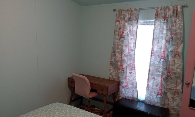 You will get your money's worth renting here on the property I call Paradise. One bedroom that sleep two. Living room has a pull out bed that will accommodate three kids comfortably. One bathroom with bathtub and shower. Full access to kitchen and dining room. Shelves with boardgames and toys and stuff toys. Washer and dryer. Cold wash only. Laundry detergent and fabric softener provided. No dogs or cats. No pets. Reason for this is there is 32 acres of vacant land to stroll and enjoy. We accept no responsibility for pets being bitten by snakes or attack by coyotes. It might be a bit confusing since there is so much offered here. Your rental cost allow you to have freedom of enjoying the comfort of being inside or if some of your family members want to camp outside under the stars, it can be done with no additional cost. If you need a place to rest and wash your clothes, this is the best place for your money. At the same time you will find the comfort of home with no neighbors to bother you.