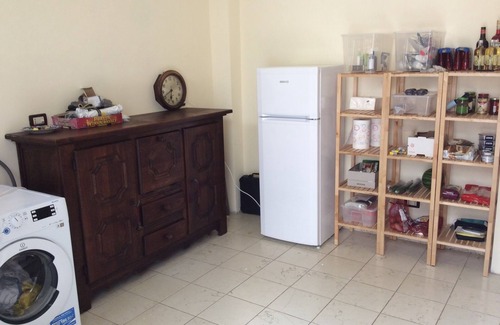 The spacious living room turns into a study, the intermediate room leads to a large kitchen. In addition there is a utility room with a. A. Washing machine, extra fridge etc. The stairs in the patio take you to the roof terrace. The villa has a swimming pool, WiFi, an audio system and a flat-screen TV.