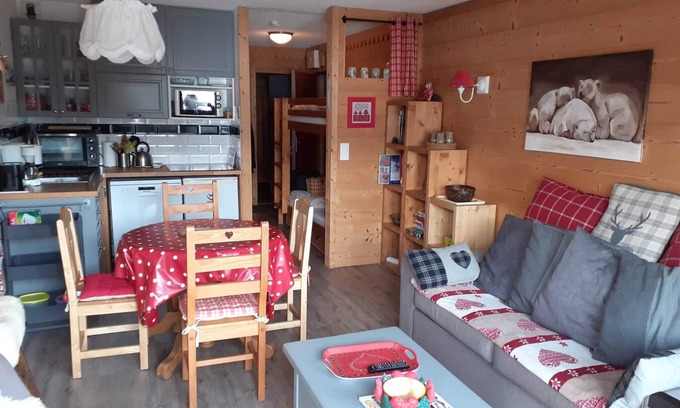 Very sunny, panoramic view, 300m from the slopes, 4 pers, 1 bdrm+cabin, 35 m2 | Apartment in Les Allues
